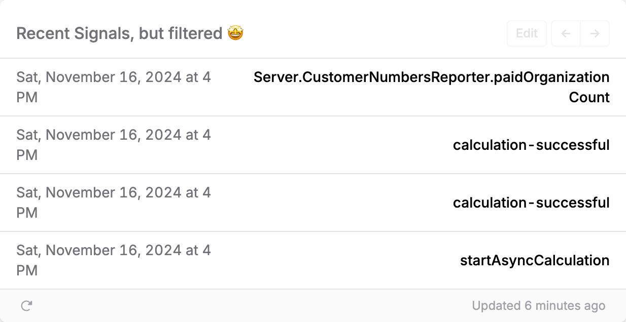 We're introducing a new scan type query that works like a SELECT * FROM query would in SQL. It can give you a list of events with time stamps similar to the Recent Signals feature, but filtered or transformed to your liking.